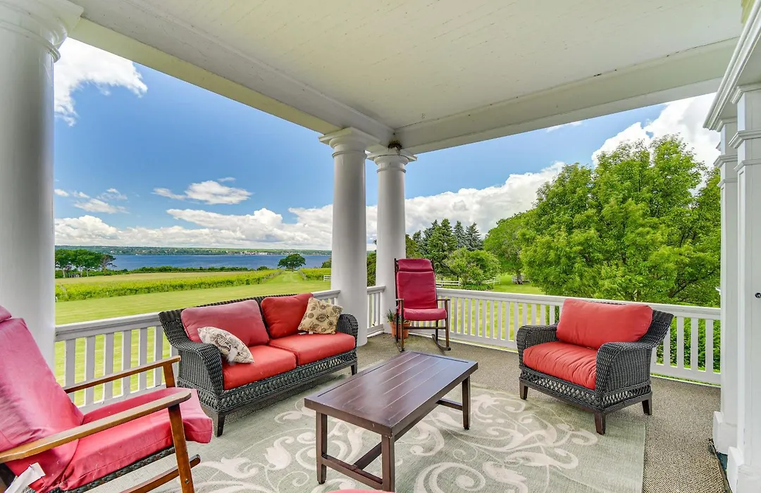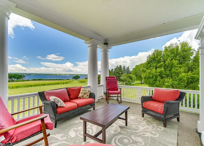 Die 6-Zimmer- Geneva Vacation Rental With Vineyard And Lake Views! bietet einen Blick auf die Seen und liegt ganz in der Nähe vom National Historical Park. Die Villa verfügt über Parkplätze und eine sonnige Terrasse mit Aussicht auf den Garten.